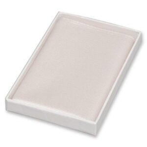 Élégante pochette de costume blanche en pure soie à fine structure côtelée.