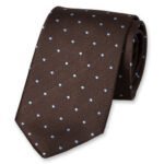 Intemporelle cravate E.L.Cravatte en soie tissée Jacquard au pois blancs sur fond bleu foncé.